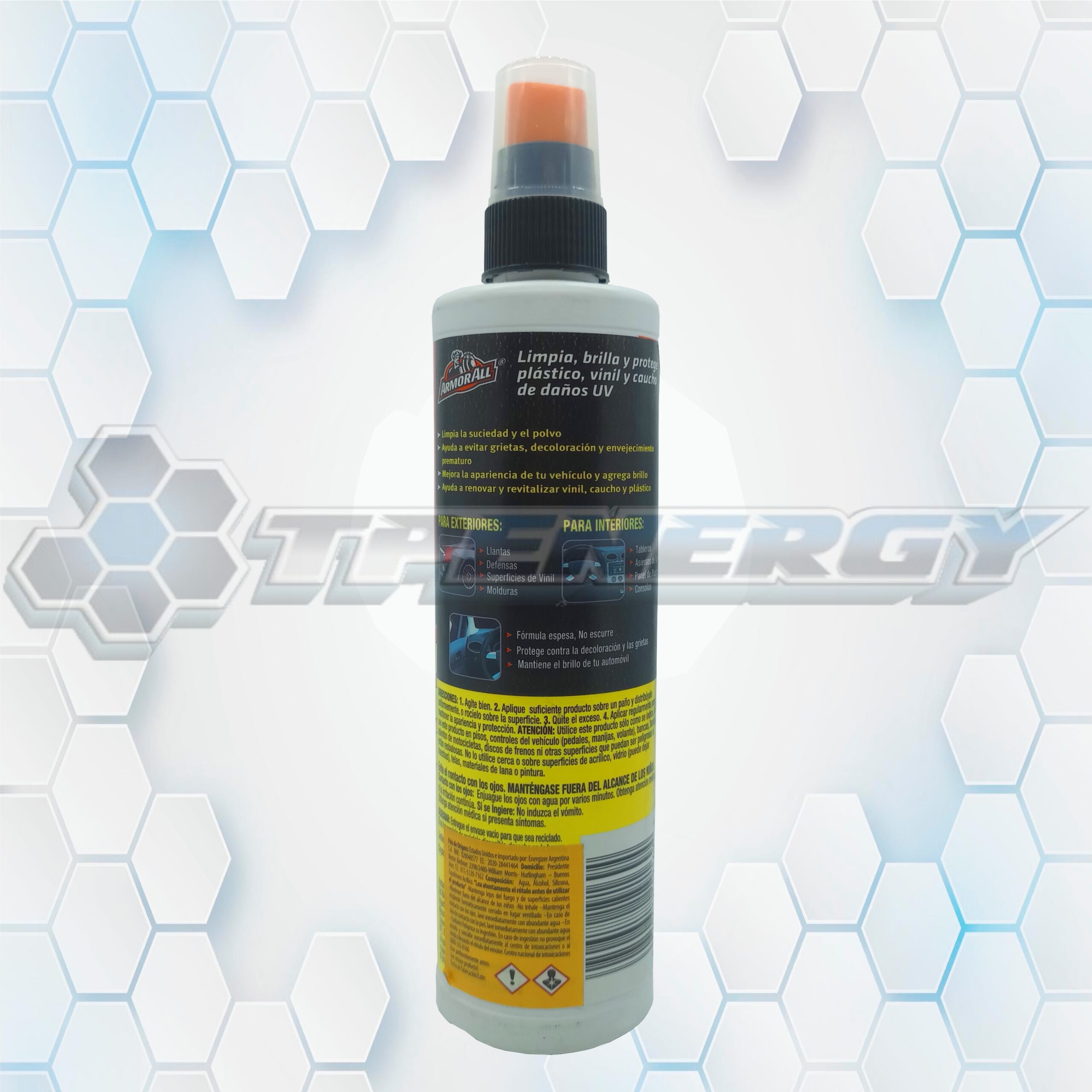 Limpiador de Superficie para auto. Limpia, brilla y protege plástico, vinil y caucho de daños UV.