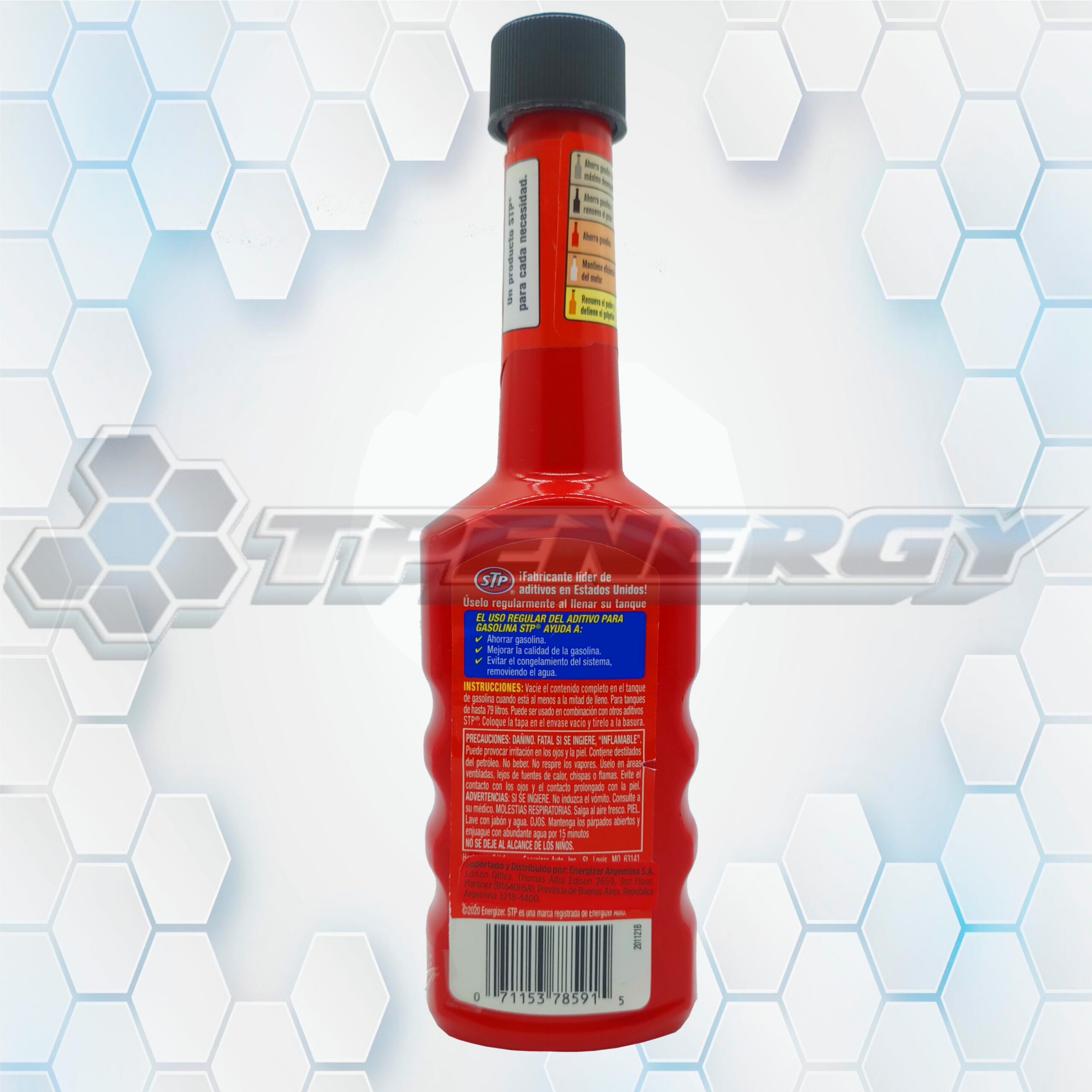 El Tratamiento para Gasolina STP® mejora la calidad de la gasolina al agregar potentes agentes de limpieza que ayudan a combatir la acumulación de depósitos nocivos en el sistema de combustible, los cuales pueden disminuir el rendimiento. También está diseñado para eliminar el agua, que puede provocar congelamiento de la línea de combustible. Este producto se produce con combustible de avión, un transportador de alta calidad de ingredientes activos.