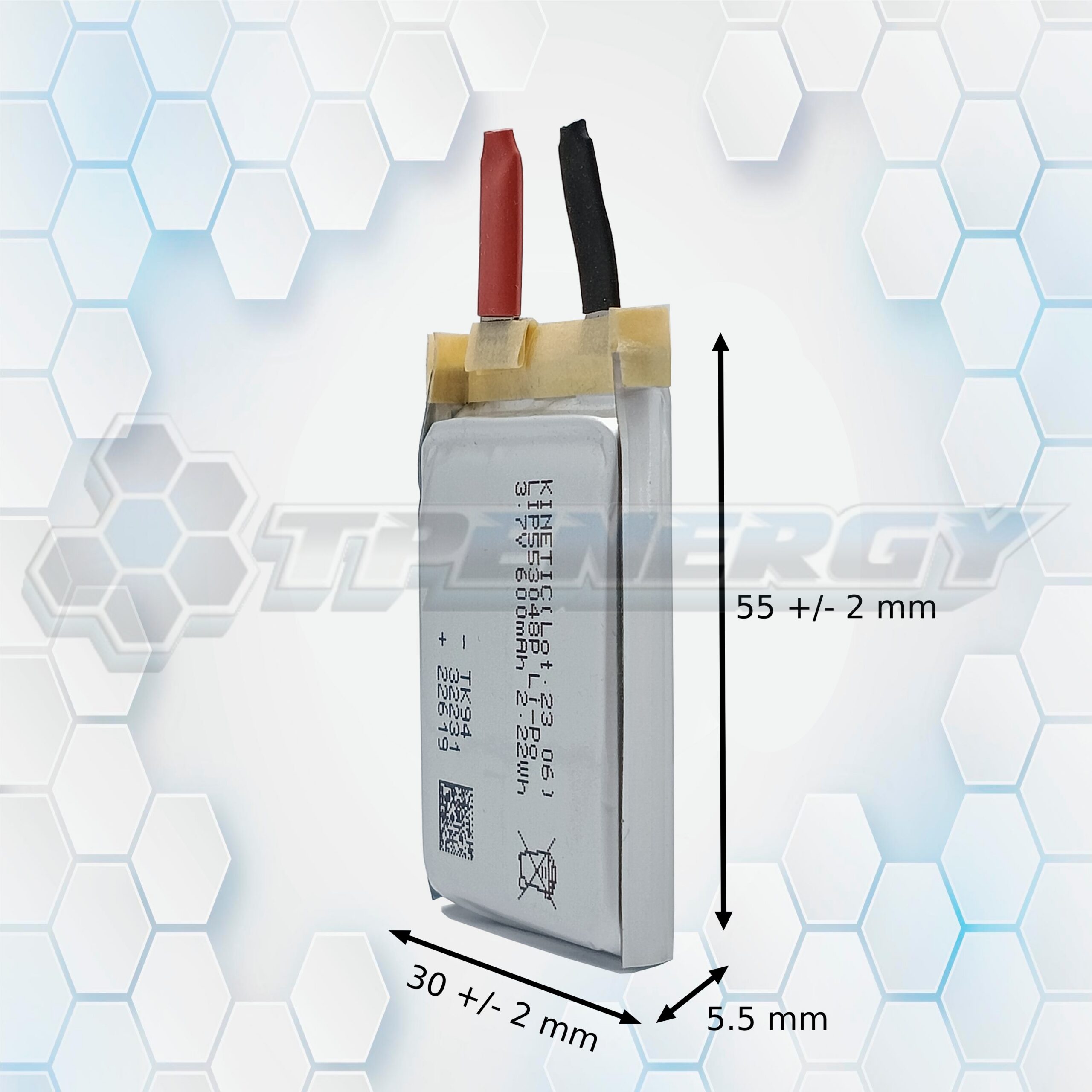 La celda de Litio Polímero Kinetic LIP553048P es una batería recargable de formato plano, diseñada para alimentar dispositivos electrónicos que requieren eficiencia energética en espacios reducidos. Con una capacidad de 600mAh y una energía de 2.22Wh, esta celda es ideal para sensores, sistemas portátiles, módulos inalámbricos y desarrollos tecnológicos compactos.