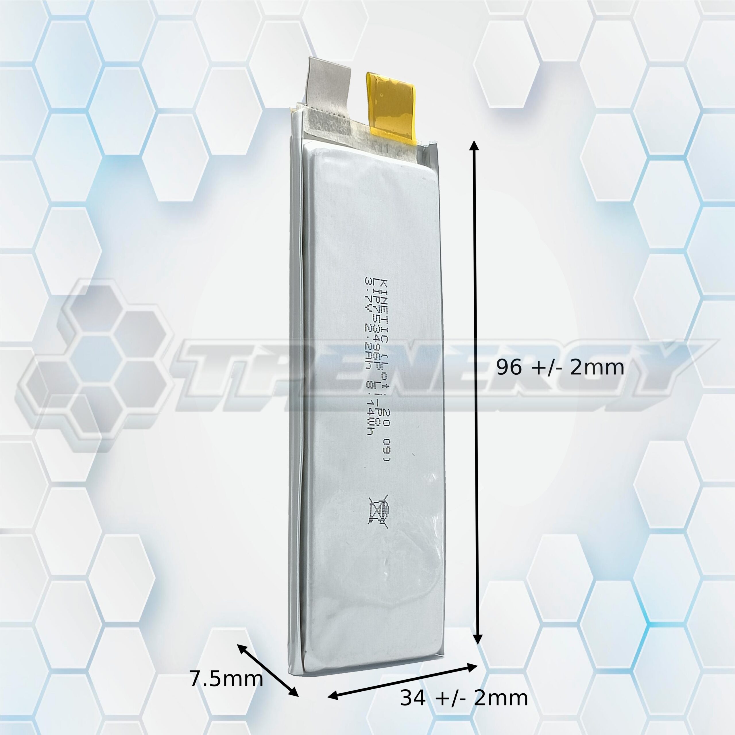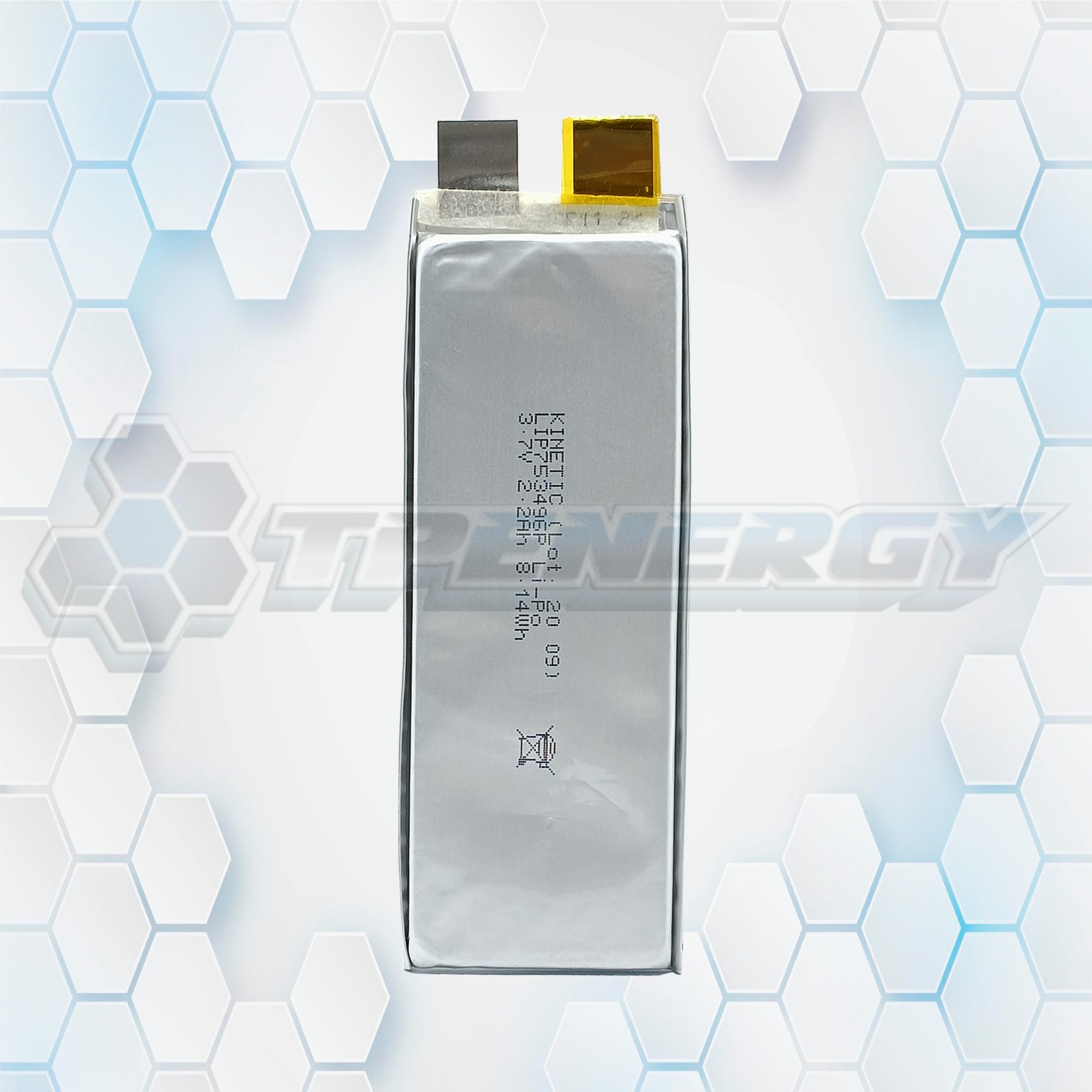 Celda Li-Po Kinetic LIP753496P de 3.7V y 2200mAh, ideal para dispositivos portátiles que requieren alta autonomía.