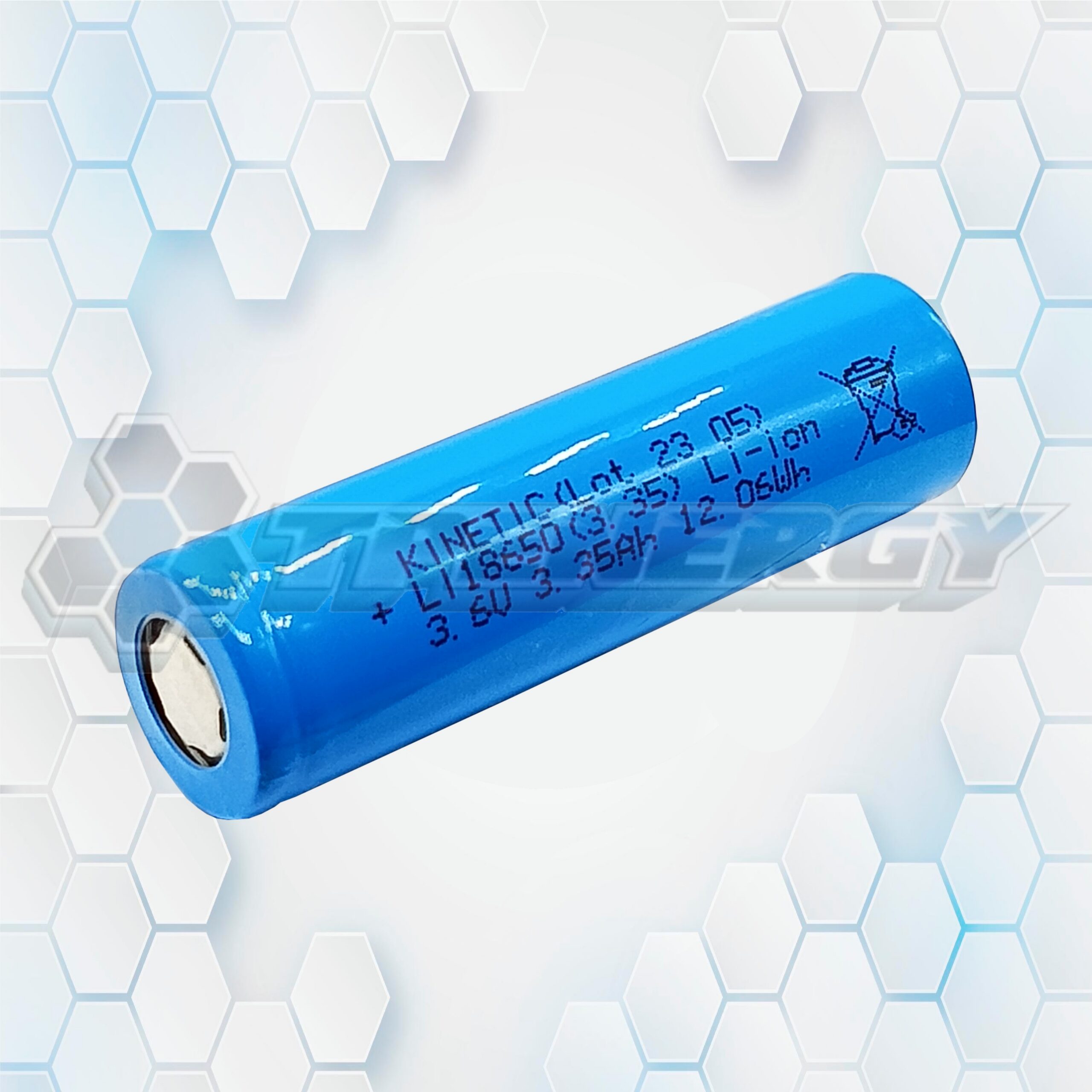 Batería Li-ion Kinetic 18650 de 3.6 V y 3350 mAh. Alta capacidad, segura y duradera. Ideal para linternas, equipos portátiles y sistemas de respaldo.