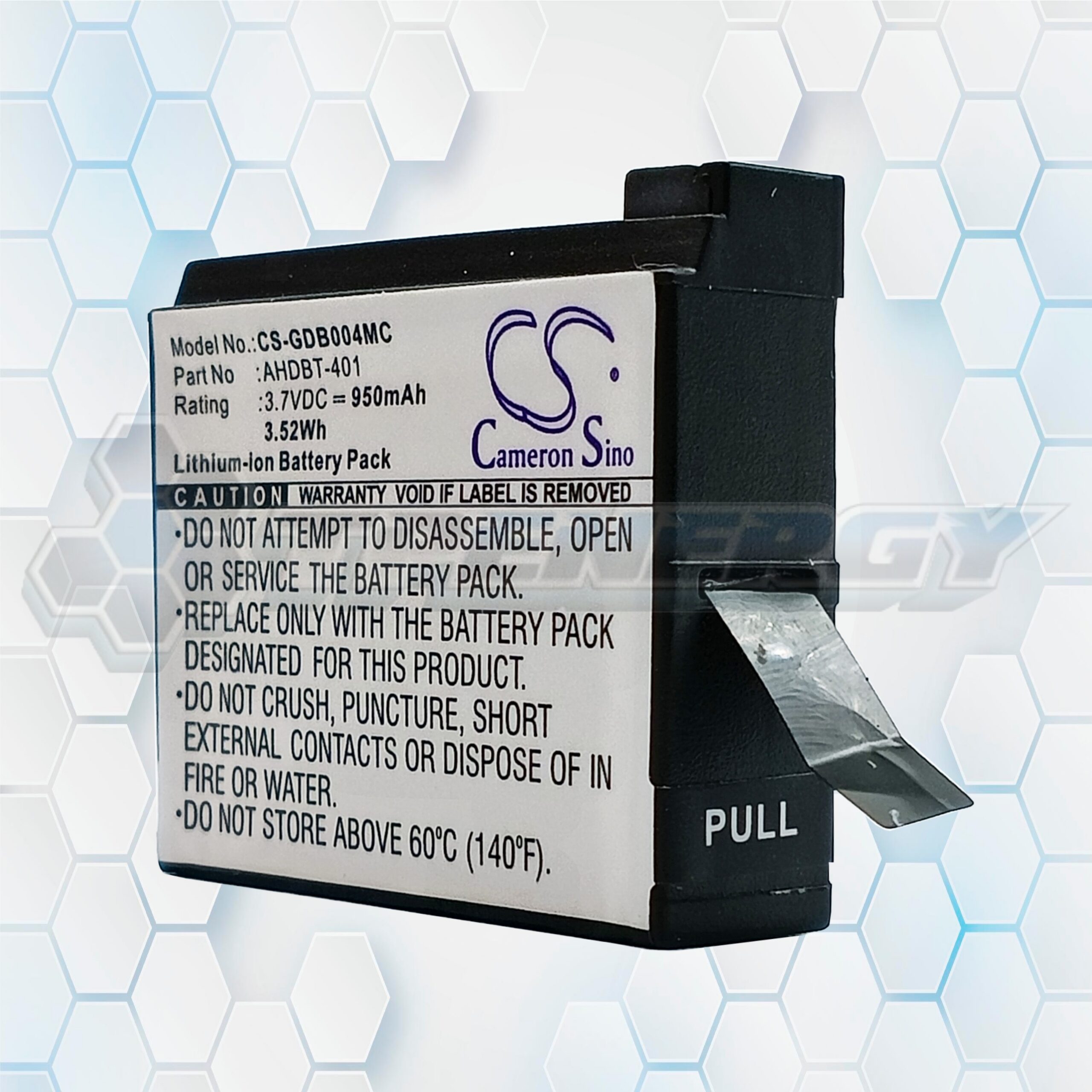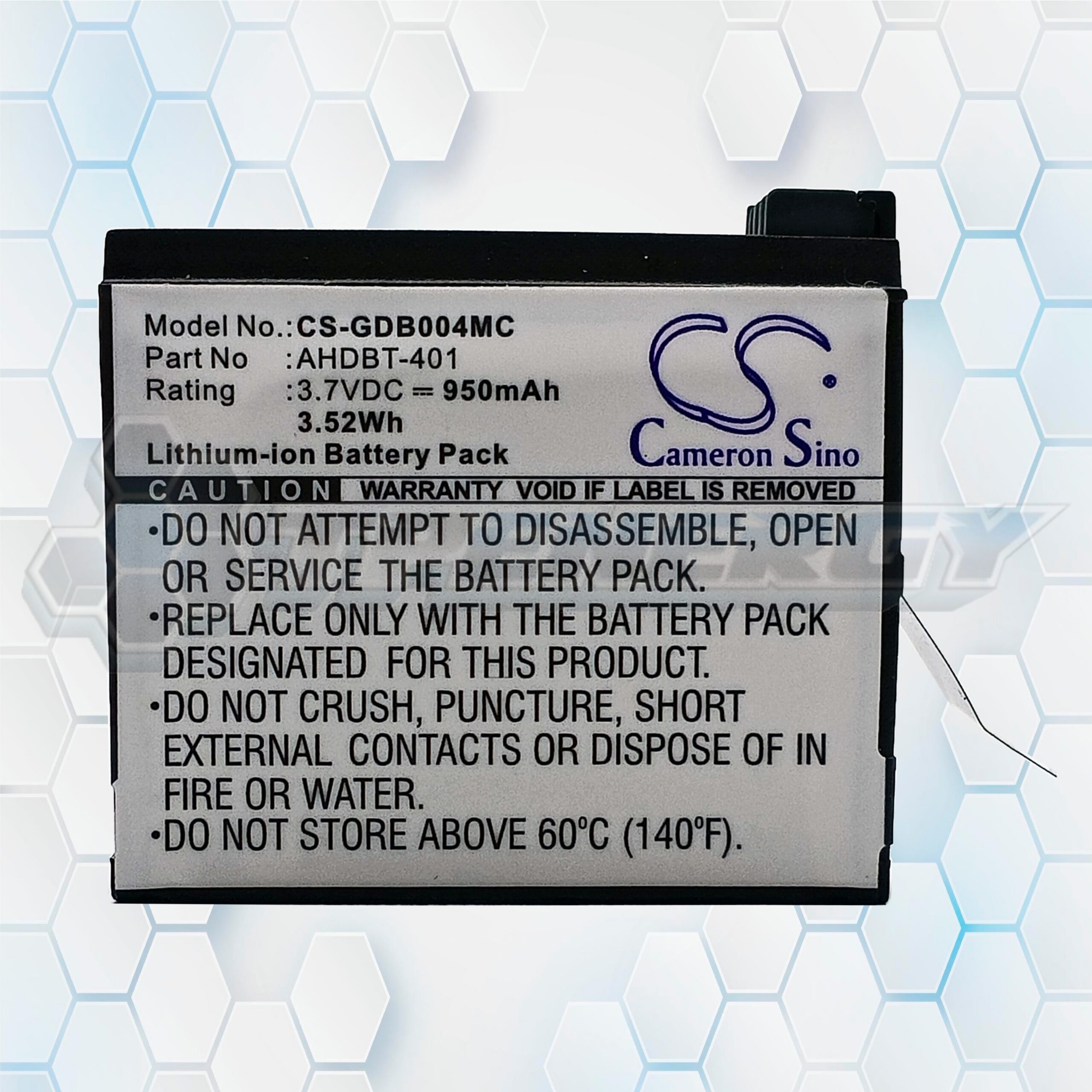 La batería CS-GDB004MC es una alternativa compatible y confiable para cámaras GoPro Hero 4. Fabricada por Cameron Sino, esta batería ofrece una capacidad de 950 mAh, ideal para sesiones de grabación prolongadas. Su diseño compacto y ligero facilita el transporte y reemplazo rápido en campo. Es intercambiable con los modelos originales AHDBT-401, lo que garantiza compatibilidad total sin necesidad de adaptadores.