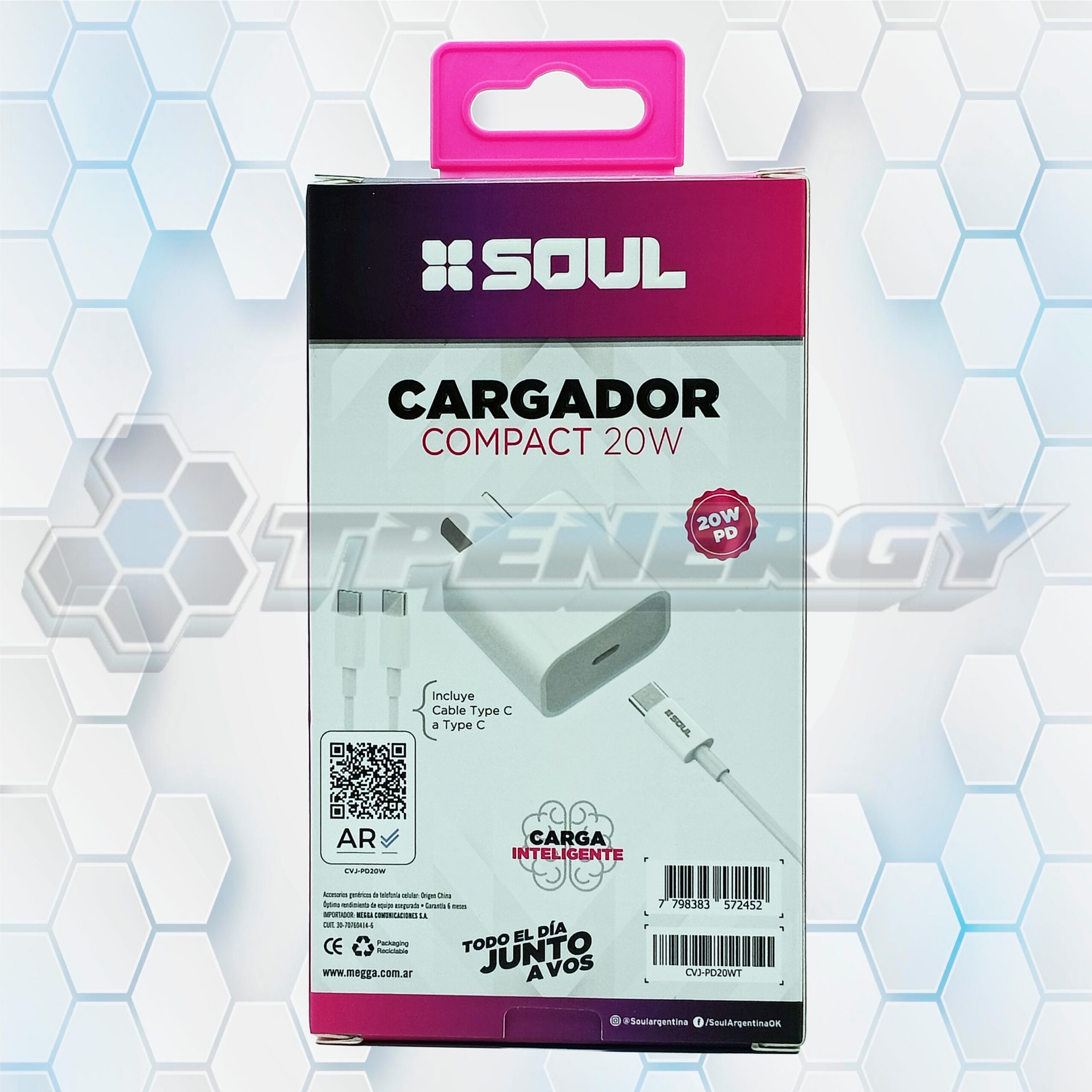 El Cargador de viaje Soul CVJ-PD20WT es una solución práctica y eficiente para mantener tus dispositivos cargados en cualquier lugar. Su diseño compacto lo convierte en el compañero ideal para viajes, oficina o uso diario. Equipado con tecnología Power Delivery (PD), ofrece una carga rápida y segura para smartphones, tablets y otros dispositivos compatibles con USB-C.