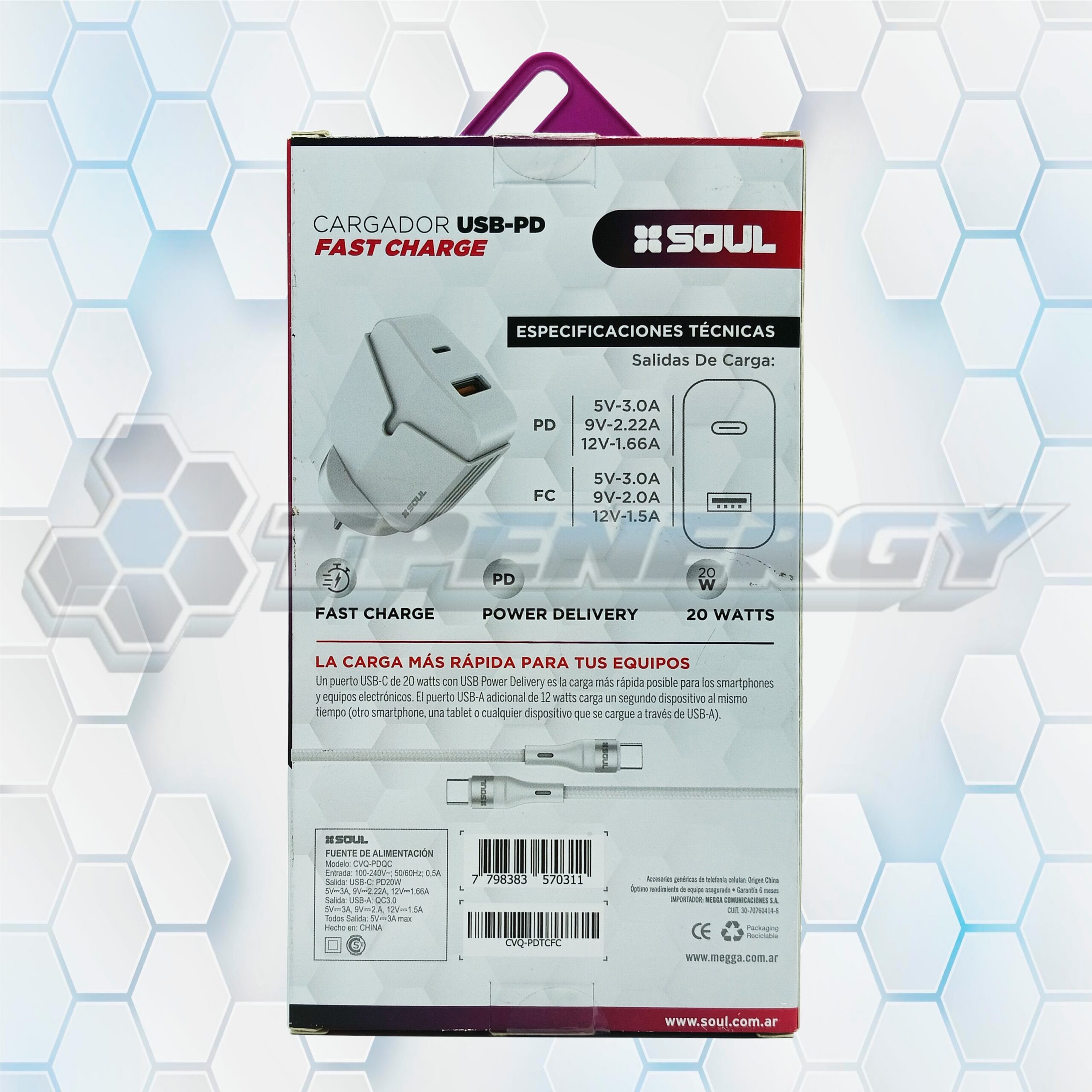 Cargador USB+PD Con Cable Ficha C Soul CVQ-PDTCFC