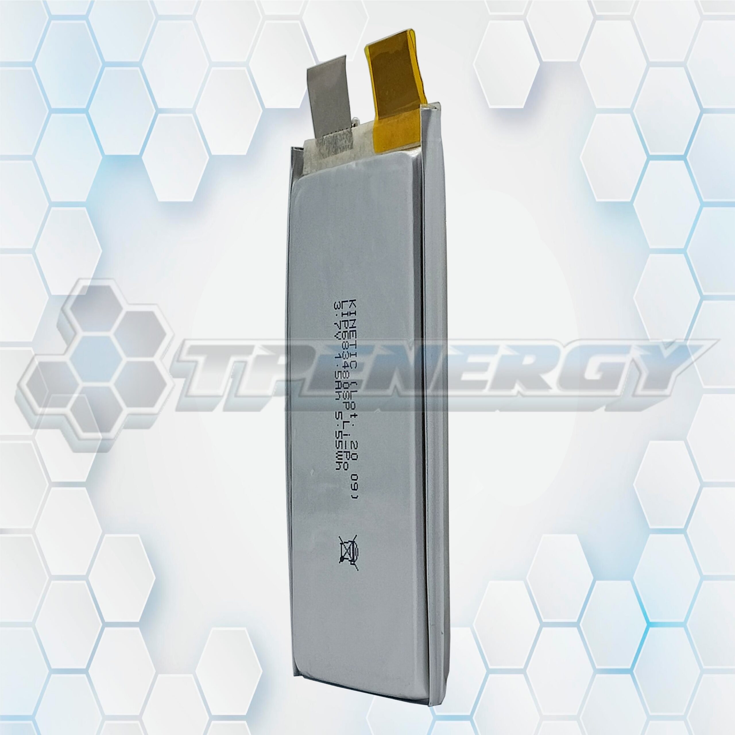 La celda LIP683480SP de Kinetic es una batería de polímero de litio recargable, diseñada para proyectos electrónicos que requieren alta densidad energética y tamaño reducido.