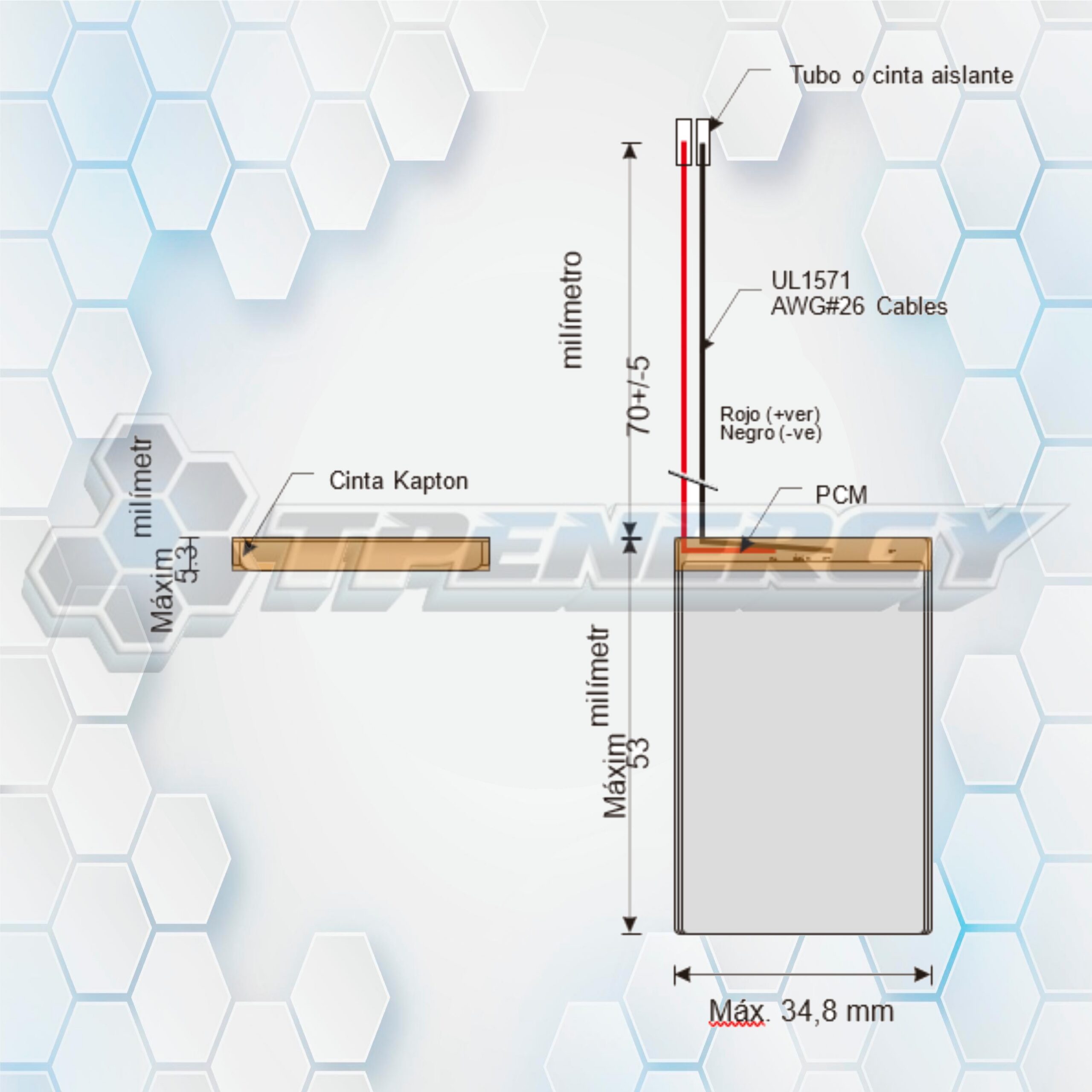 Longitud de cables: 70 ±5 mm