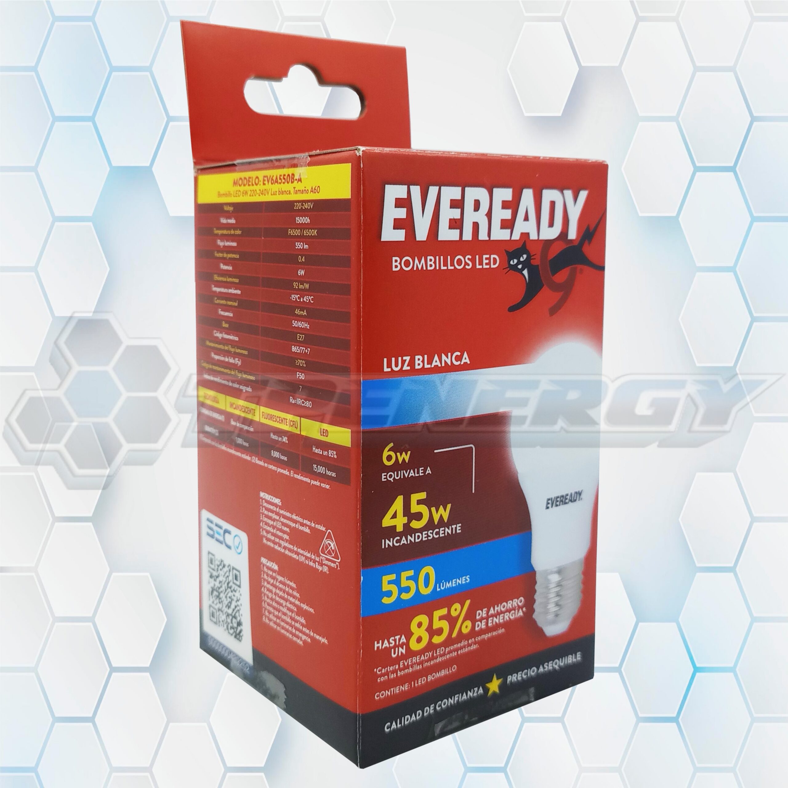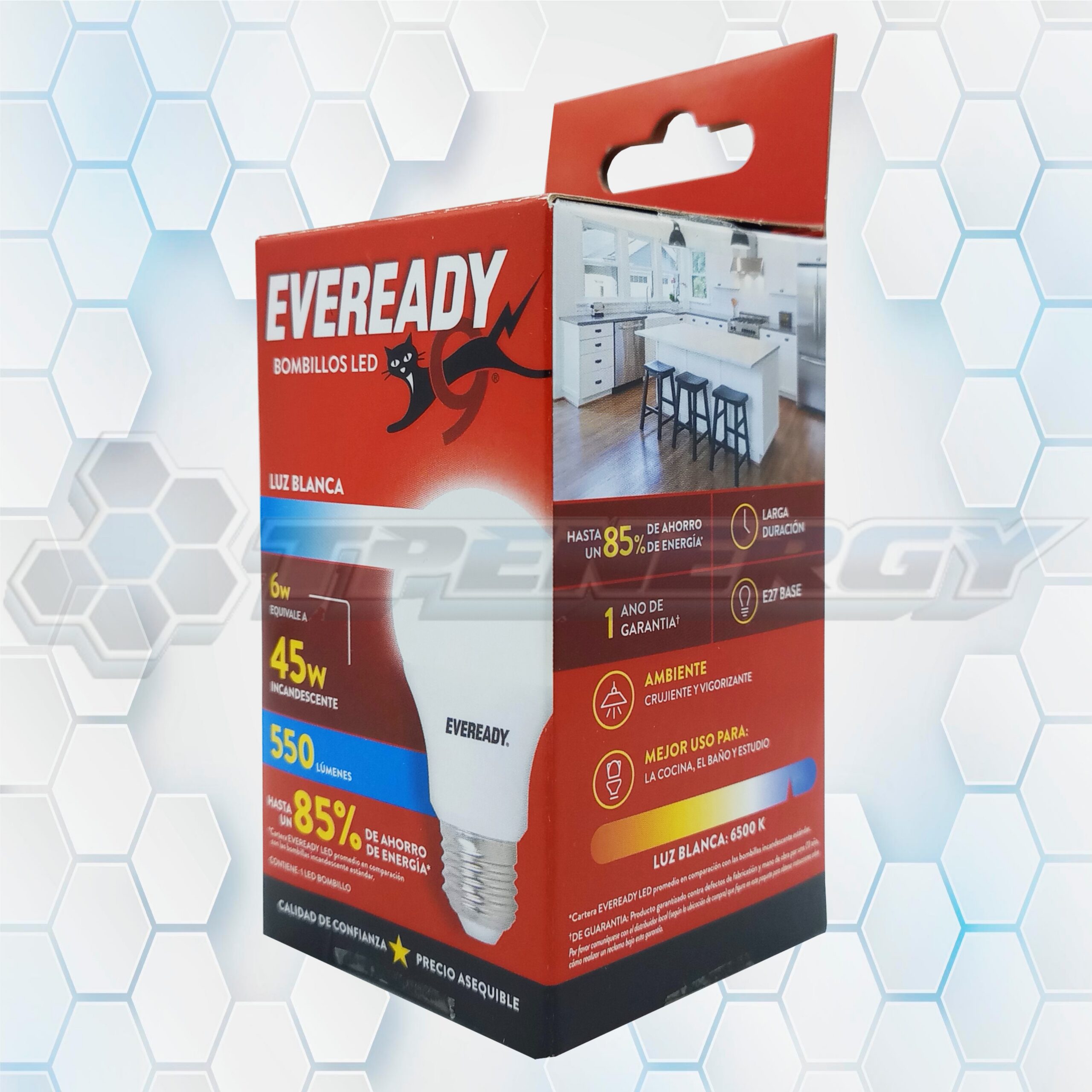 Lámpara LED Eveready 6W Luz Blanca 6500K Ahorro de Energía 85% E27 550 lm