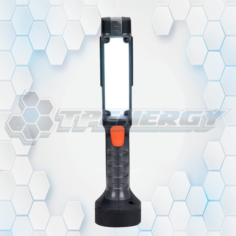 Su cuerpo robusto está fabricado con materiales de alta resistencia, capaz de soportar caídas de hasta 7 metros, y cuenta con certificación IPX4, lo que la hace resistente a salpicaduras de agua. Incorpora una base magnética para fijarla a superficies metálicas y un gancho integrado que permite colgarla, facilitando el uso manos libres. Además, es dimerizable, lo que permite ajustar la intensidad de la luz según la necesidad.