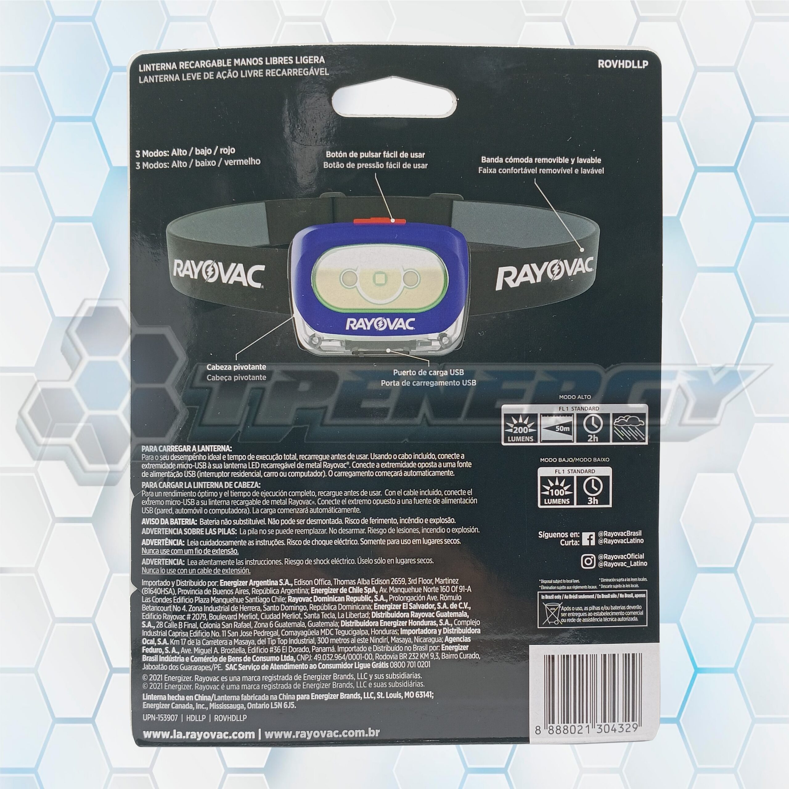 Linterna Led Recargable ROVHDLLP 200 Lúmenes Manos Libres RAYOVAC