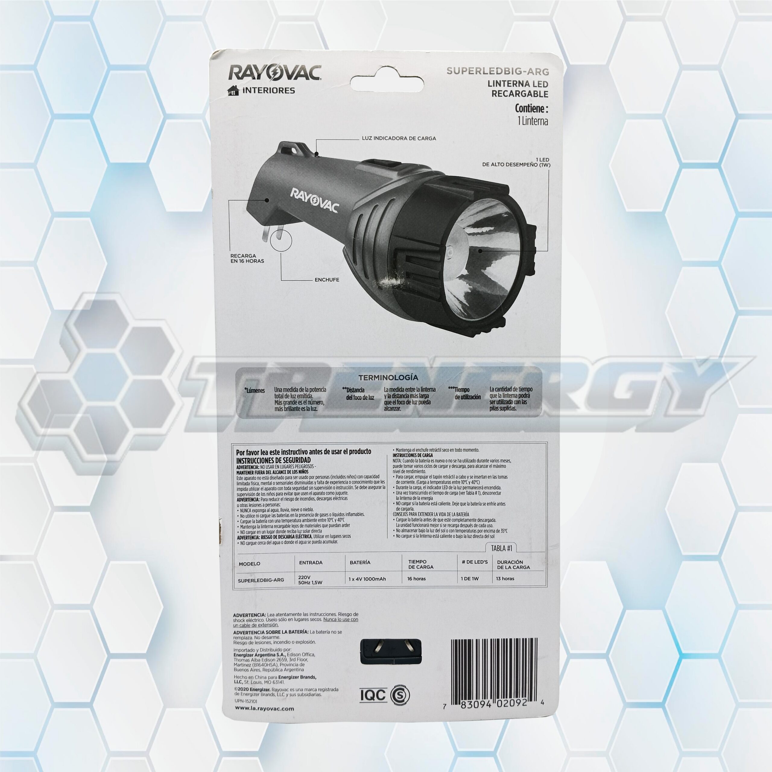 La Rayovac SUPERLEDBIG-ARG es una linterna recargable de alto rendimiento, diseñada para brindar una iluminación potente y duradera. Con 100 lúmenes de potencia y un alcance de hasta 154 metros, es ideal para actividades al aire libre, cortes de luz o tareas domésticas. Su diseño compacto y enchufe incorporado la hacen práctica y fácil de usar.