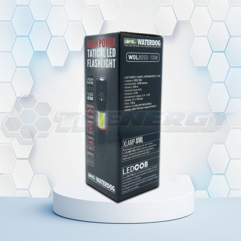 Linterna Táctica Waterdog WOL8050 10W Recargable 1000 Lúmenes con Zoom
