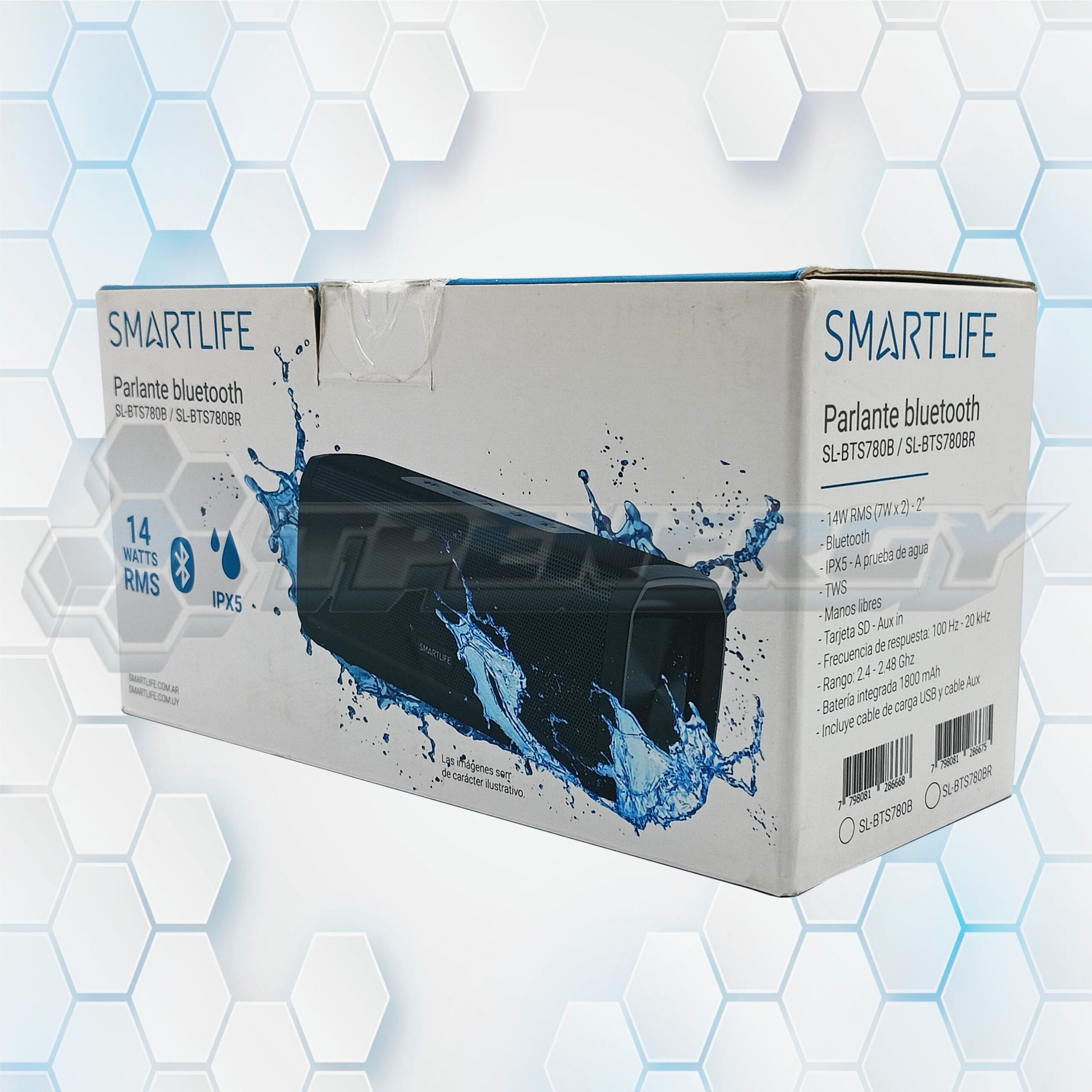 El SMARTLIFE SL-BTS780B es un parlante portátil ideal para quienes buscan potencia, versatilidad y resistencia. Con una salida de 14W RMS (7W x 2), ofrece un sonido claro y potente en un formato compacto.
