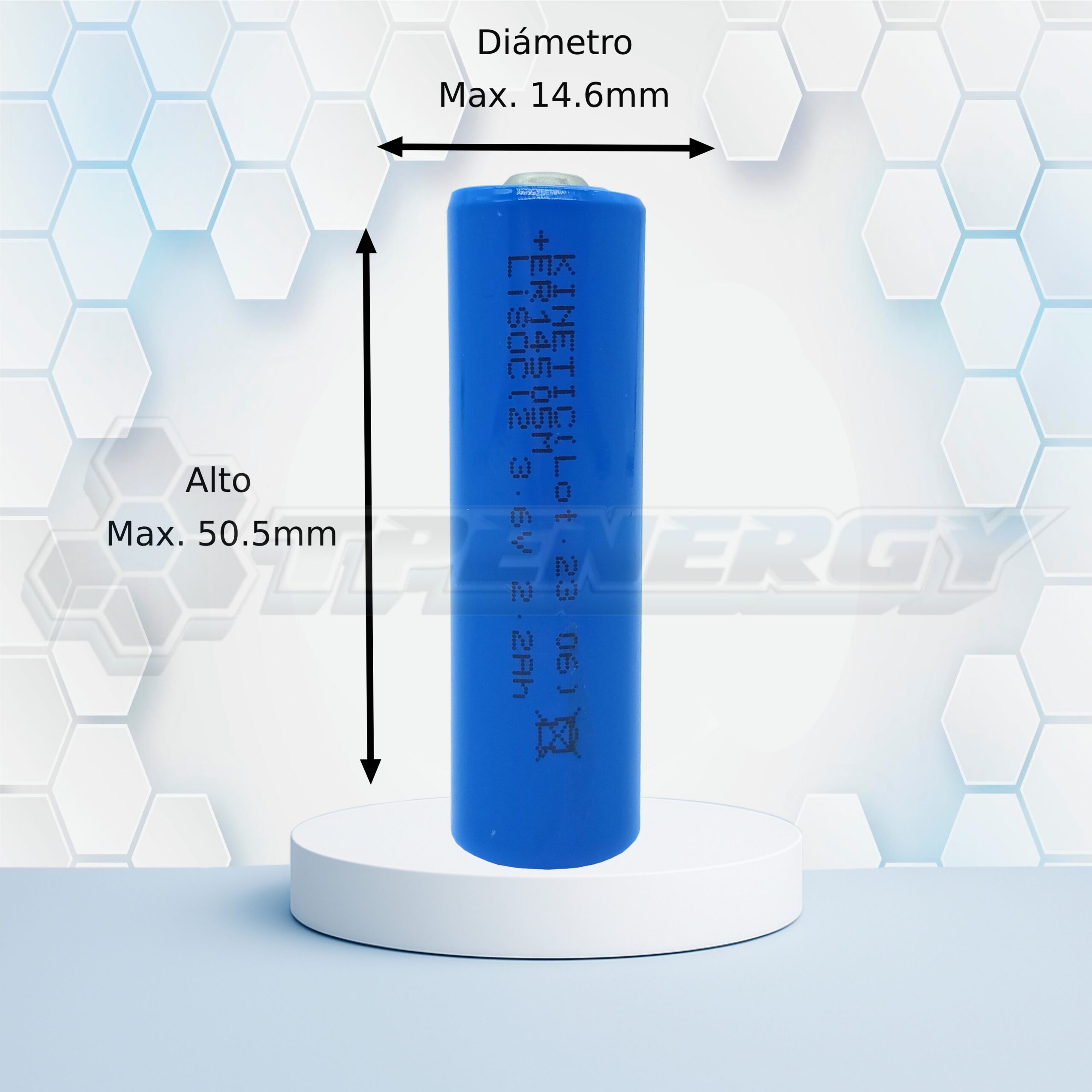 Modelo: ER14505M Tipo: Batería de Litio Cloruro de Tionilo (Li-SOCl₂), tipo espiral (alta potencia) Tamaño: AA Voltaje Nominal: 3.6 V Capacidad Nominal: 2200 mAh (mínimo 2090 mAh a 3 mA, 20°C hasta 2.0 V) Voltaje de Corte: 2.0 V Peso Aproximado: 20 g Vida Útil Estimada: 10 años (almacenada a 60°C por 200 días como referencia)