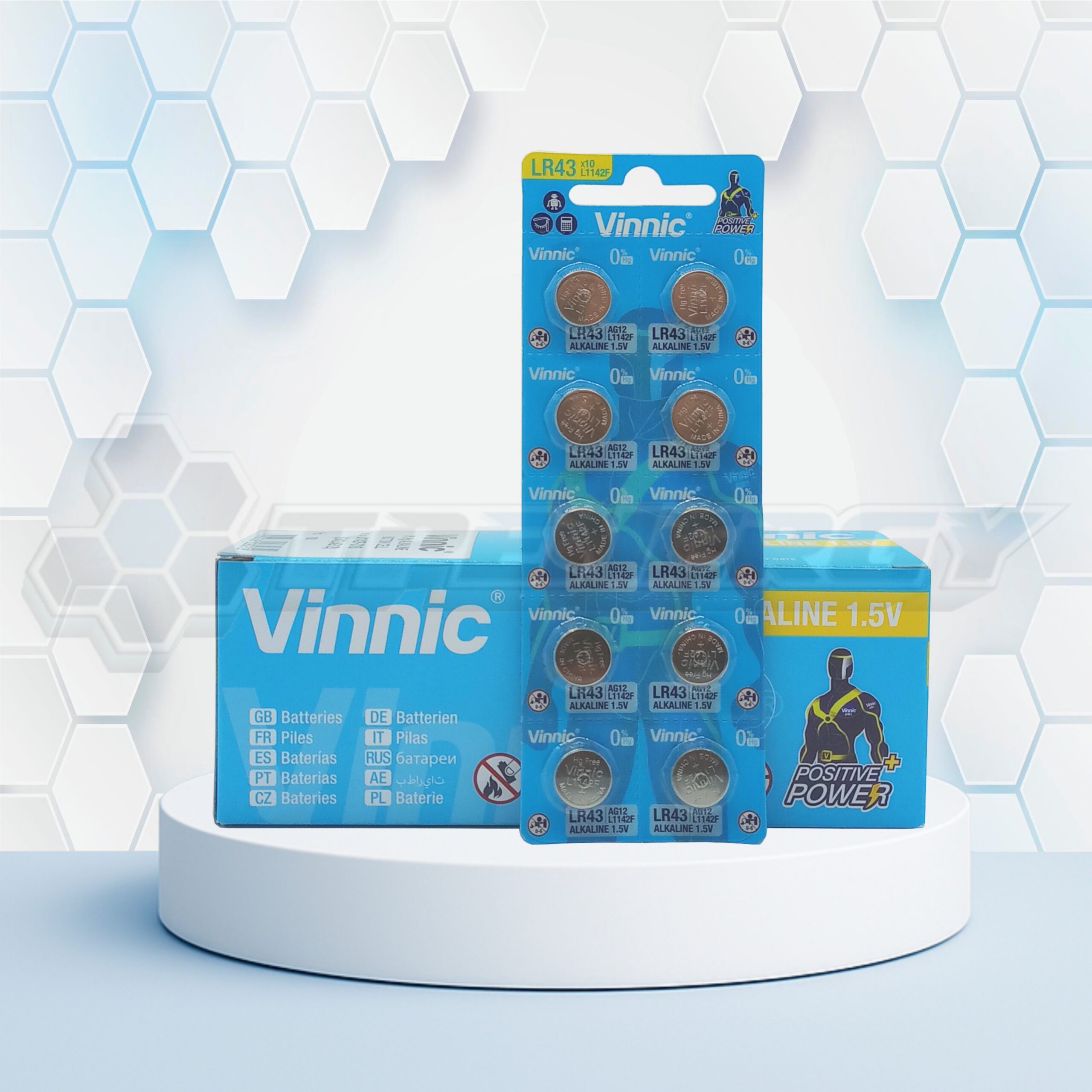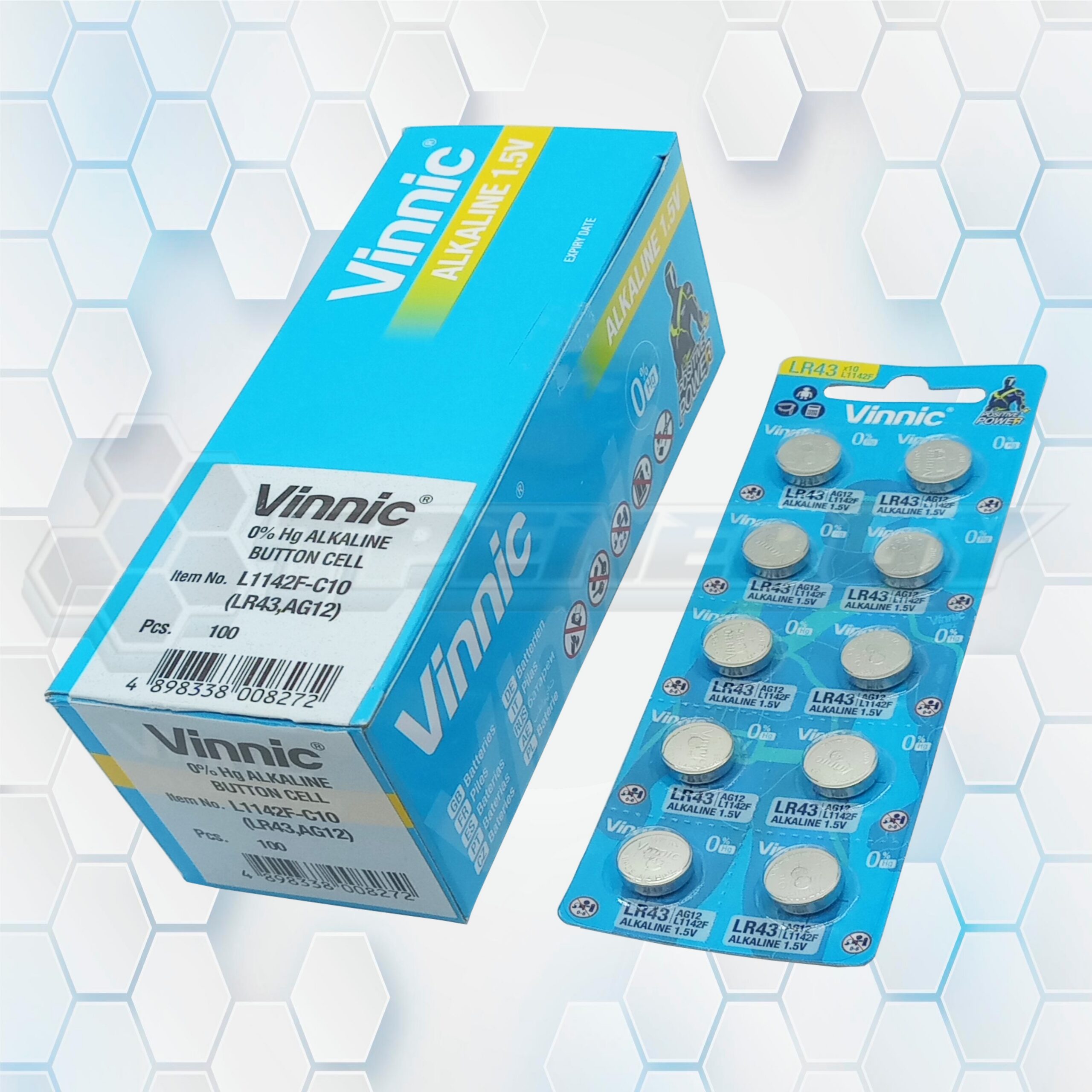 Pila Alcalina VINNIC LR43 / L1142F – 1.5V – Blister x10 unidades
