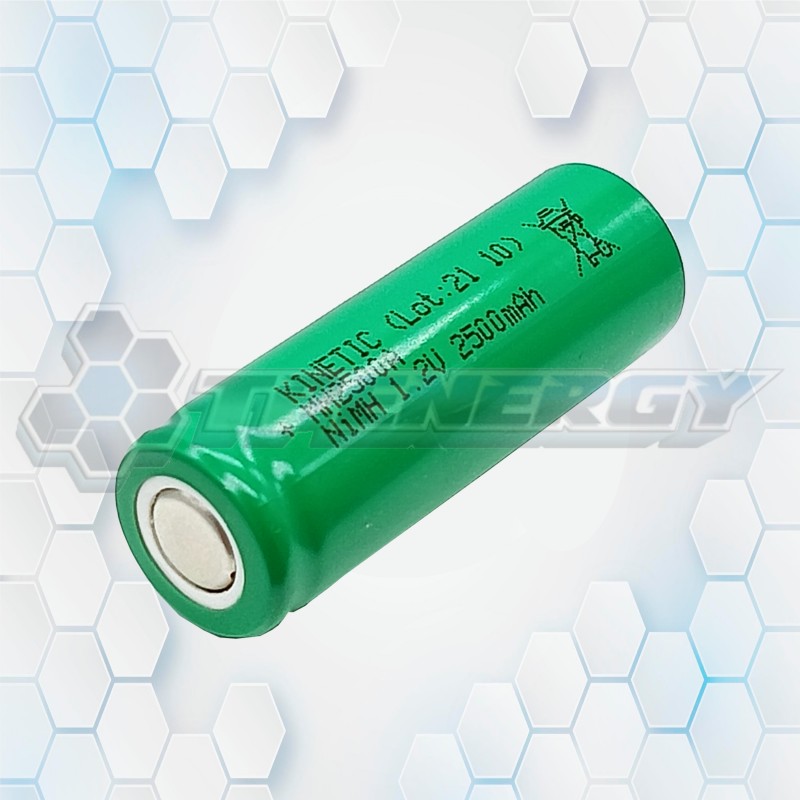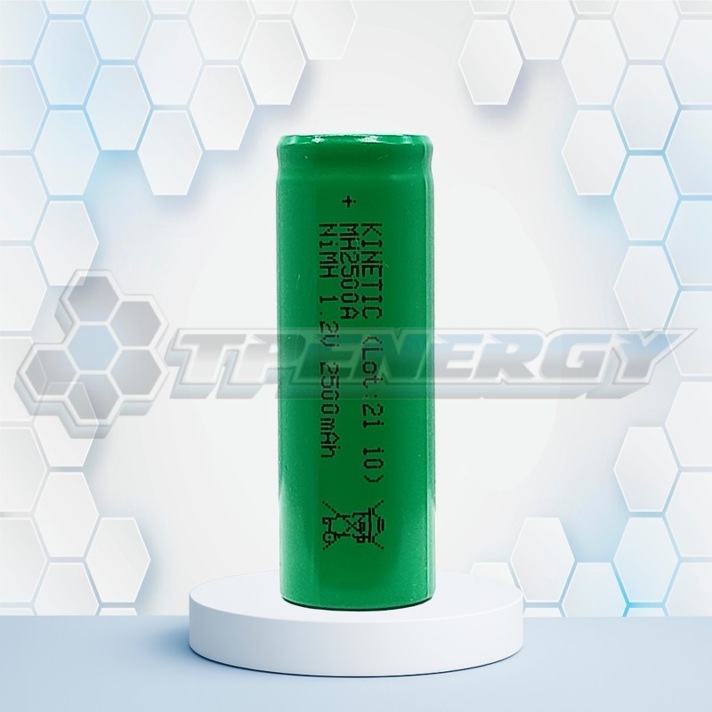 Pila Ni-MH Kinetic tipo A de 1.2 V y 2500 mAh. Recargable, robusta y eficiente. Ideal para packs industriales, herramientas y equipos médicos.