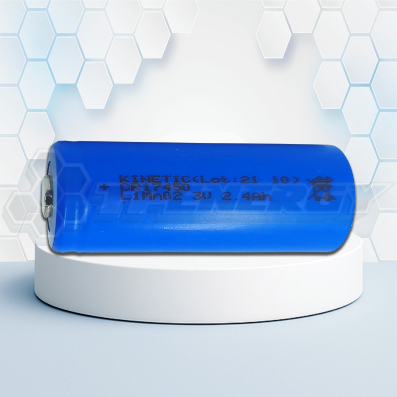 Marca: Kinetic Modelo: CR17450 Tipo: Batería de litio No recargable (LiMnO₂) Formato: Cilíndrico (4/5 A)