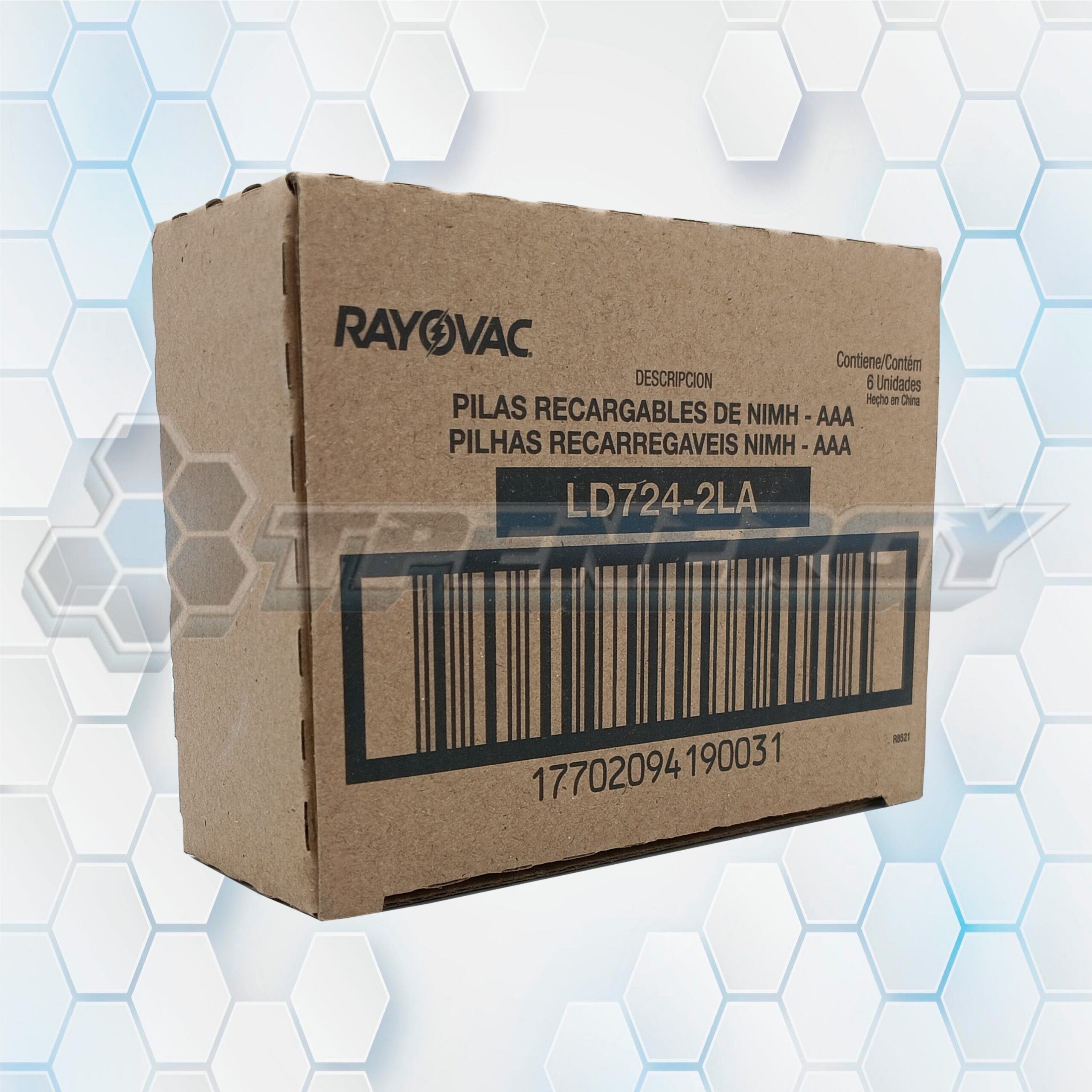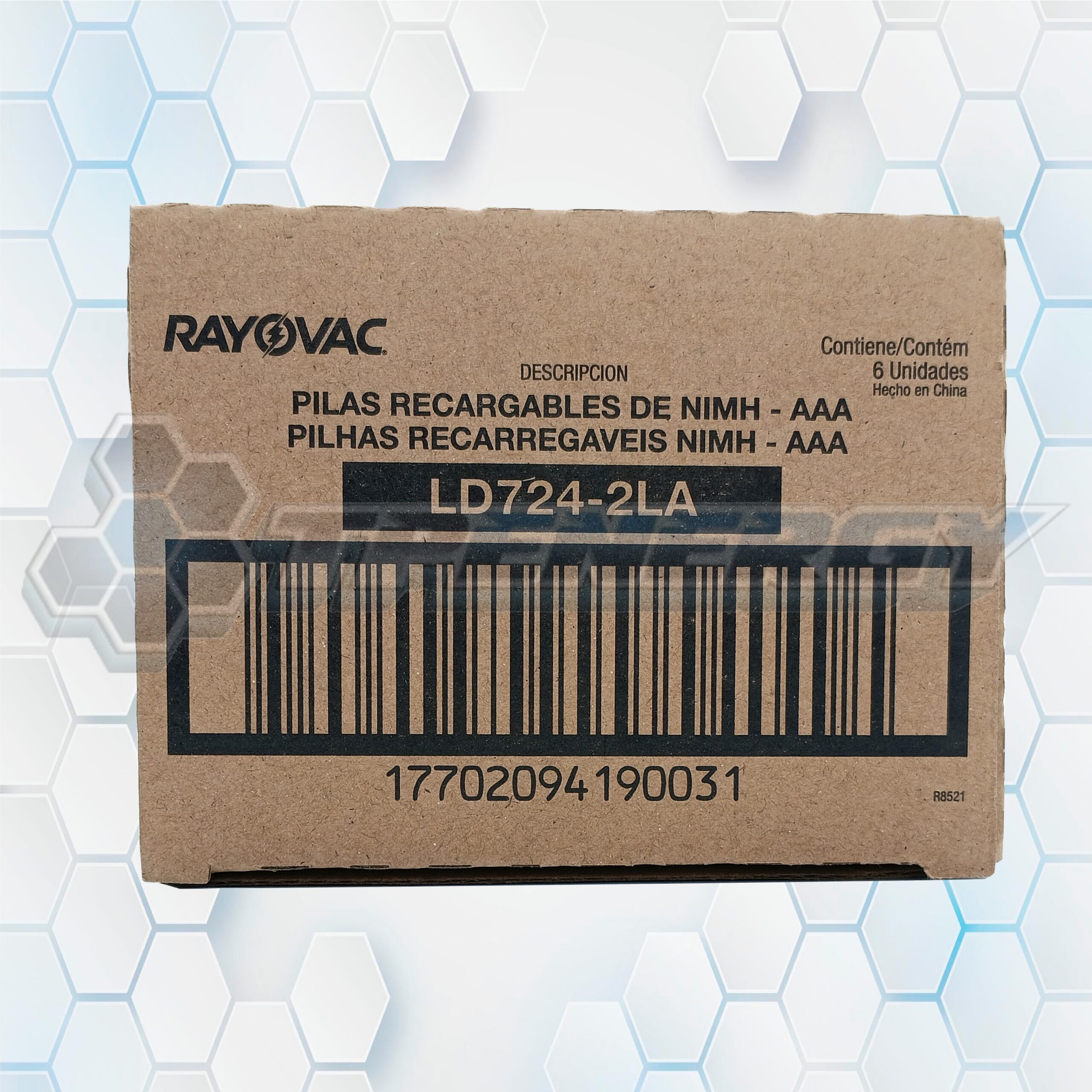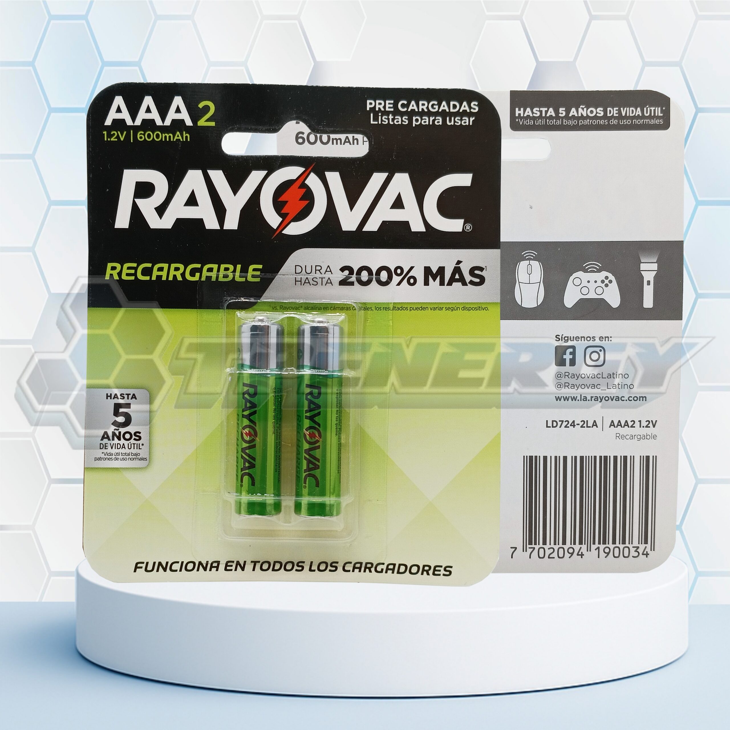 Pilas AAA recargables Rayovac de 600mAh. Tecnología Ni-MH, listas para usar y compatibles con todos los cargadores Rayovac. Ideal para dispositivos de alto consumo. Modelo LD724-2LA