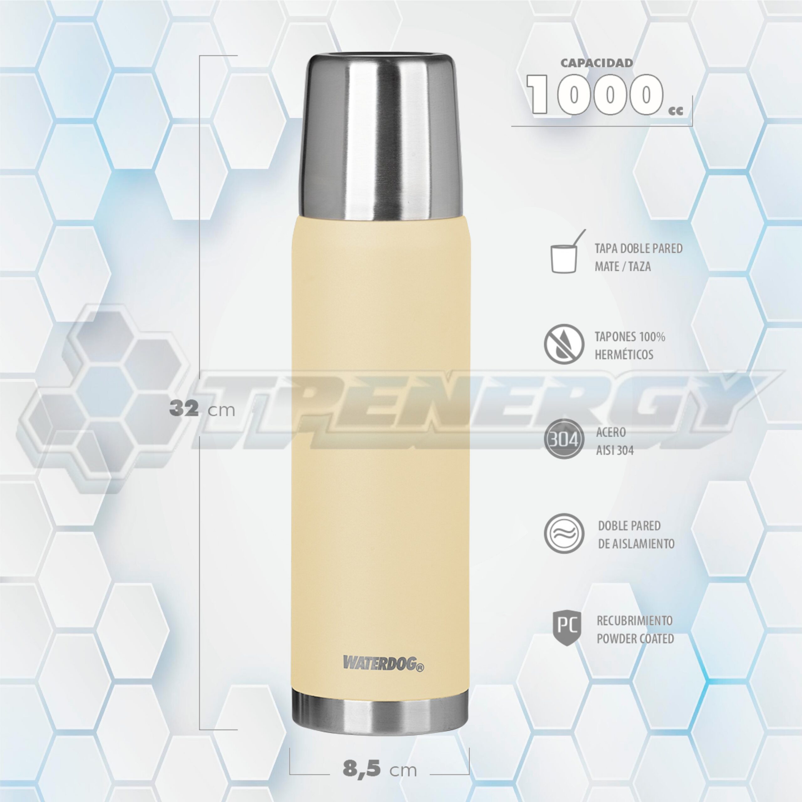 El Termo Waterdog OBUS1000 de 1 litro es la elección ideal para quienes buscan calidad, durabilidad y excelente conservación térmica. Fabricado completamente en acero inoxidable AISI 304, este termo ofrece resistencia a la corrosión y una larga vida útil. Su doble pared con aislamiento al vacío permite mantener bebidas calientes por hasta 8 horas y frías por 12, adaptándose a cualquier estación del año.