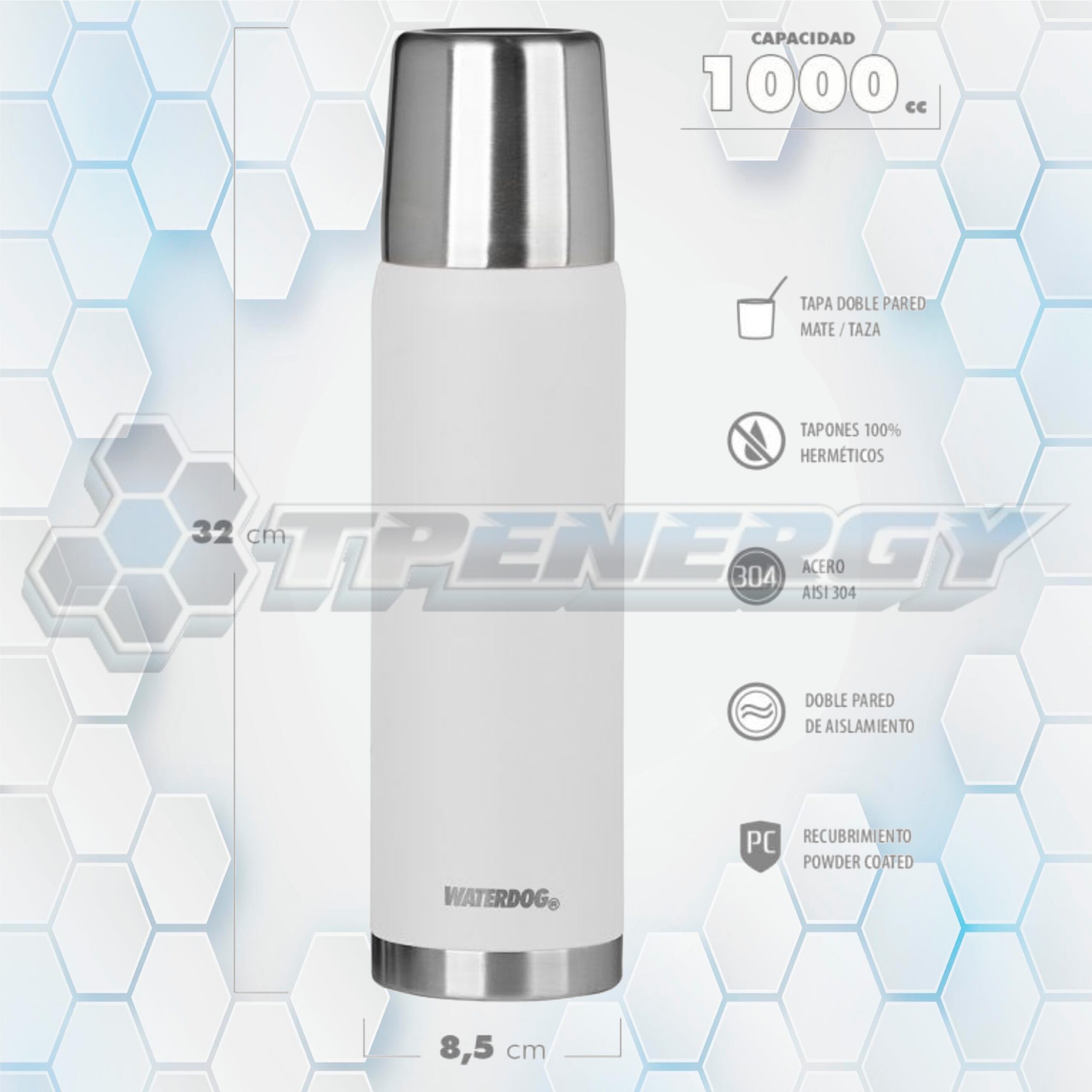 El Termo Waterdog OBUS1000 de 1 litro es la elección ideal para quienes buscan calidad, durabilidad y excelente conservación térmica. Fabricado completamente en acero inoxidable AISI 304, este termo ofrece resistencia a la corrosión y una larga vida útil. Su doble pared con aislamiento al vacío permite mantener bebidas calientes por hasta 8 horas y frías por 12, adaptándose a cualquier estación del año.